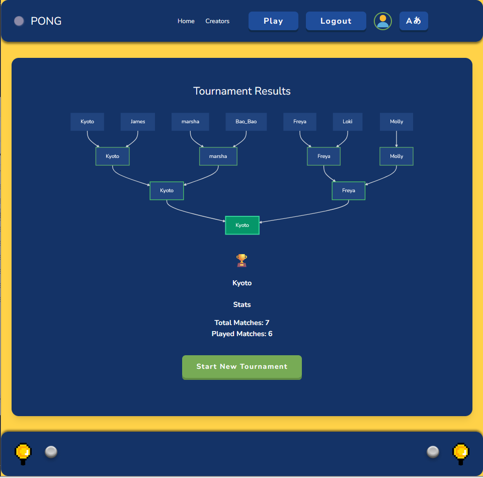The tournament engine was built to support any number of players, dynamically generating brackets and managing match progression. All results are persisted and integrated into player history and analytics dashboards.